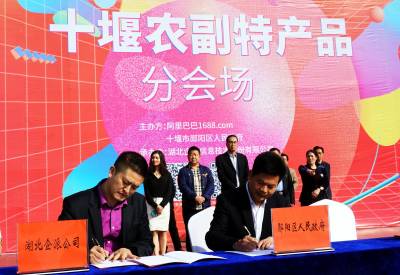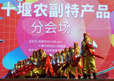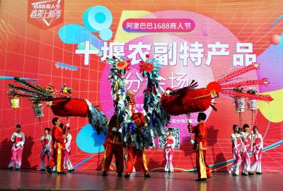 2018年3月27日,阿里巴巴牵头主办的十堰农副特产品1688商人节在十堰市郧阳区郧阳文化广场举行,渝川泡菜、蘑芋、木瓜酒、木耳、香菇、苞谷糁、土鸡、土鸡蛋、葛粉等32家农副特产品纷纷亮相供市民选购,多家企业现场签约进驻郧阳区,凤凰灯舞和众人划浆开大船在阿里巴巴1688商人节上演出。 视界网 周家山 摄