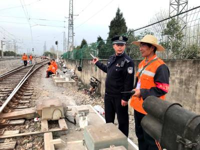 为保障京九铁路集中修期间线路平稳,武汉铁路公安局麻城公安处及时与麻城工务段对接,指挥辖区民警沉入一线,采取分片包段、流动检查、跟班作业等形式,深入到每一个施工点,检查施工现场安全隐患,督促施工、设备管理单位及时消除安全隐患,对现场施工人员进行安全施工教育,确保铁路集中修期间辖区治安平稳。同时,铁路警方及时向施工单位通报前期线路隐患排查结果,借此次集中修契机将各类线路隐患清零,打牢全年线路安全基础,确保京九大动脉畅通。