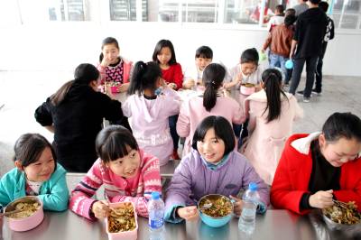 留守儿童的盛宴 28日,巴东县官渡口镇官渡口小学留守儿童津津有味地吃着晚餐。 该校有40名留守儿童在校住读,为使留守儿童在校有饭吃,吃得饱,吃得好,学校专门聘请炊事员烹饪出荤素搭配的营养餐供他们享用。孩子们一日三餐吃着人气腾腾的饭菜尤为开心。为加强对留守儿童的管理,该校增大投入,建起亲情小屋,安装可视电话,添置图书和体育器材,安排专人守护,留守儿童生活得舒心,学校成了留守儿童的乐园。(视界网向国大摄)巴东县官渡口镇官渡口小学