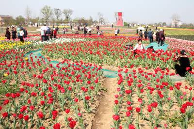 花海乐翻自驾游 3月28日,枝江市同心花海游客络绎不绝,赏花观景拍照乐开怀。当日,来自外地的100多辆小车载着老人、亲朋好友踏青自驾游,把满园的“睡美人”——郁金香都乐得更加娇艳醉人。视界网刘卫东摄