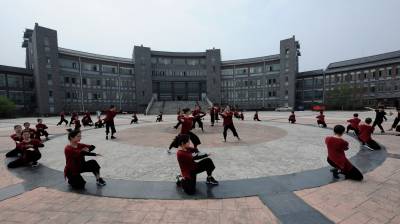 3月29日,在湖北文理学院舞蹈学院,亦海道长在该院传授非遗--武当太极拳已经完成教学,53名大学生在参加院校组织的太极拳与太极阵考试,这是该院首次进行非遗进校园课程考试。现在,非遗传承已经成为该院大学生的必修课。当天,学生们在亦海道长的带领下,参加学院考试,据介绍,近期,该院将准备将国家级非遗--端公舞与南漳高跷纳入学生的必修课。
