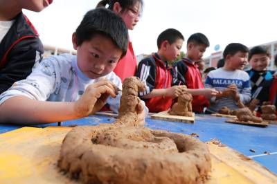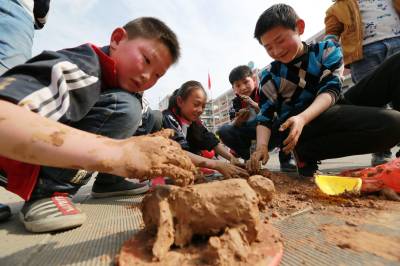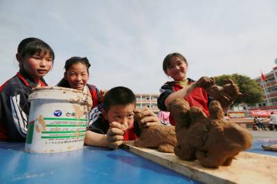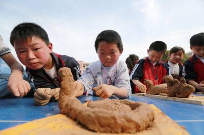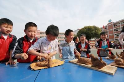 乡村留守娃,快乐“玩泥巴”。3月28日,竹山县宝丰镇施洋小学五年级学生正在快乐的上泥塑课。该校第五期“相守计划”的主题是“巧手揉捏万物真 情满心间幸福溢”,学校立足乡土资源,定期开展“玩泥巴”这一传统泥塑活动。孩子们通过擀、搓、压、挤、捏、按等基本技法进行泥塑造型,感受泥土的特性,体会动手创造美的乐趣,将娱乐活动融于“相守计划”、美术学习等活动中,让乡村留守儿童在玩中学、在学中乐,享受幸福的童年生活。