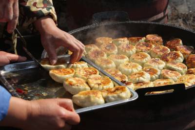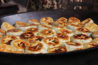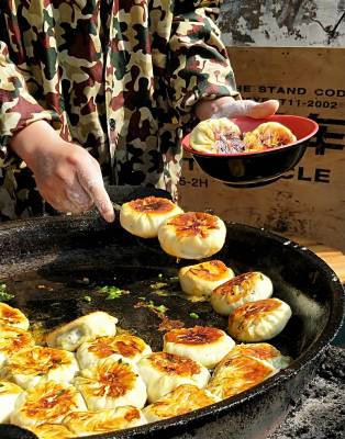 胡金店是位于湖北云梦西北部的一个古老小镇,与安陆市接壤。水汽包子是本镇的一大特色小吃。周边乡镇以及云梦、安陆、应城、孝感、武汉等地的客人常慕名特地来到古老的小镇品尝“水汽包子”。胡金店镇的水汽包子是当地特有的传统小吃,有着悠久的历史。它用上好的面粉活熟擀成面皮,包上酱汁等调制独特的韭菜馅。然后在柴火灶炉上摆上大大的平锅,白白的水汽包子摆放在锅里,水与金黄的食油浇下去,水汽包子便发出吱吱的声响,盖上锅盖,蒸腾的热气四处飘逸。蒸腾一会再翻过来蒸腾另一面。待两边呈现出金黄的脆口的硬壳,随后出锅,清香四溢的“水汽包子”就可食用了。品尝着刚刚出锅冒着热气的水汽包子,喝着啤酒等饮料,配上胡金店镇地方的野生鳝鱼、泥鳅、螺蛳、米豆腐、包卷等乡土菜,有的品着小酒,别有风味。胡金店“水汽包子”最大的特点是皮薄,馅儿大。再加上韭菜的那种清香,醇香四溢。包子馅主要用的是当地的绿色有机韭菜,刚出锅的滚烫的韭菜馅冒着香气,烫嘴暖身。金黄的底部结着硬壳,汽水足,油润光亮,外脆内软,软硬相间,不油腻,清淡清香可口,香气诱人,香脆宜人。阳春三月,正是品尝胡金店镇水汽包子的季节,醇香可口的水汽包子吸引八方来客慕名前来品尝。 本报视界网 陈保忠 摄
