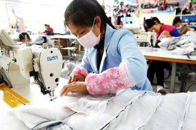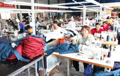 2018年4月14日,房县军店镇月明村农家女在当地的天健服饰扶贫车间加工服装,全村已有113名留守妇女在家门口的兆丰电子、天健服饰扶贫车间就业,年均实现收入2.4万元。房县县委、县政府实施“一揽子”优惠政策,鼓励龙头企业把“扶贫车间”办到乡镇、村组,就近吸纳精准扶贫户家庭中的留守妇女,在家门口的电子、服装、耳菇等“扶贫车间”上班。目前,全县1.36万名妇女在家门口就业,此举,既照顾了家庭与孩子,还可以将摞荒地种上庄稼,实现经济、社会效益双丰收。