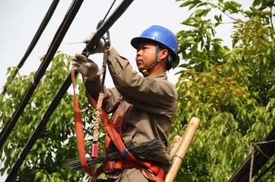 春灌用好电 双休忙不停 4月15日,国网谷城县供电公司员工在10千伏谷67后湖线赵康1号台区1至8号杆展放电缆。该公司以高度责任感服务春灌用电。全县已有156口泵站、653口机井投入春灌。(视界网马明刚摄)