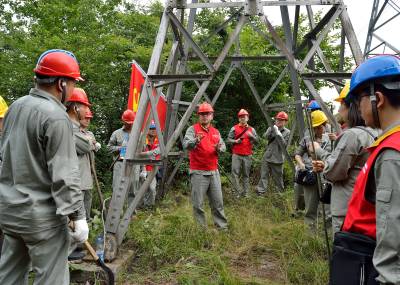 湖北沙洋:塔上“穿针引线” 消除线路隐患