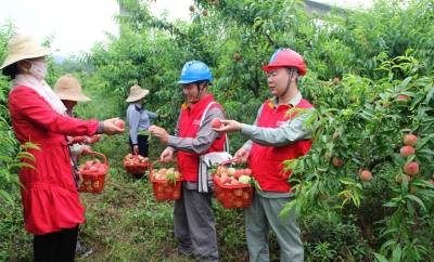 鲜桃甜了心窝窝 5月29日,国网谷城县供电公司员工在茨河镇金果农庄了解用电情况。如何让百姓从“获得电力”得到“摸得着”的实惠,该公司连续3年投入新一轮农网改造资金4.9亿元,农业、农字企业从用电难到随意用电,农民富了口袋,美了生活。(视界网马明刚摄)
