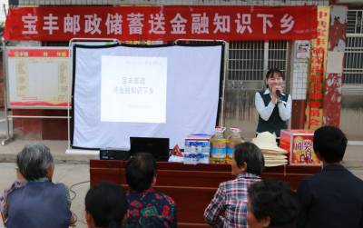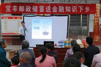 5月28日,中国邮政集团公司湖北竹山分公司宝丰邮政支局工作人员,深入该镇深沟村开展“送金融知识下乡”活动。为进一步助力精准扶贫工作,提高邮政美誉度和“三农”服务质量,该支局扎实开展好“送金融知识下乡”活动,通过在社区、村委会、人流密集区等设立宣传点、悬挂横幅、摆放宣传海报、发放宣传折页等形式,以通俗易懂的讲座为乡里乡亲普及小额信贷、防金融诈骗、邮政惠民政策等知识,把金融服务送到百姓家门口。