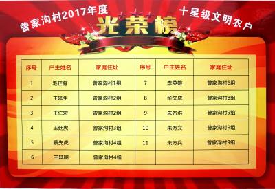 2018年5月30日,十堰市郧阳区茶店镇蔡家岭村将37家"新十星级文明农户"光荣榜摆在显著位置供村民观看,截止日前郧阳区20个乡镇(场)4005家新十星级文明农户己经挂牌。此次该区评选的新十星级文明农户内容为脱贫星、产业、勤俭、卫生、科教、新风、家风、互助、法纪、感恩星。是从全区341个行政村,151400户评选出来的,占总户数的2.68%。 视界网周家山 摄