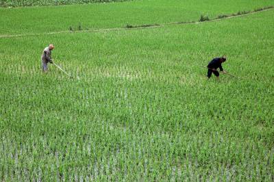 用耙子糊秧草 过去,在我老家谷城县南河镇苏区村,村民们糊秧草都是手拄一根棍子,两只脚一前一后,分别在秧行里来回左右趟,小草用脚踩进泥中,大草用手扯。现在却变了,糊秧草用小耙子在秧行里耙,耙的秧行多,耙的又快,人还省力,很是新鲜。 谷城县城粉阳路33号(宣传部)帅瑜 摄 (手机13972211958邮编441700)