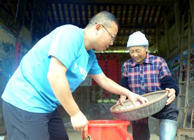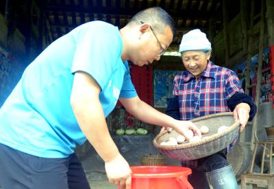 5月31日,来凤县革勒车镇镇南村“尖刀班”干部余高元在8组村民石卯香家收购鸡蛋。养鸡是镇南村的主要产业之一,家家户户养鸡且不善交易,已成传统。为让村民最大限度增加经济收入,县国家税务局驻村“尖刀班”与县多家超市和餐馆达成购销协议,将村民家的鸡蛋、土鸡直接送达超市餐馆。“尖刀班”不仅利用到户时间多的机会上门收购,而且还在村里设立专门的鸡蛋、土鸡收购点,方便村民就近交易。
