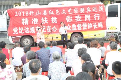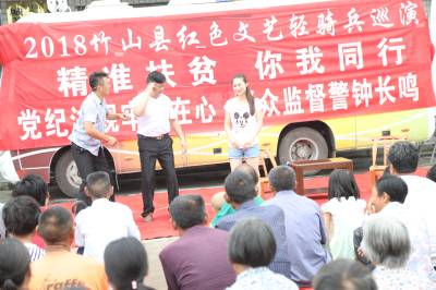 据悉,为发挥廉政文化在反腐倡廉工作中的重要作用,竹山县纪委监委联合县文体新广局,将本县丰富的文化资源和党风廉政建设相结合,充分利用优秀廉政文化传统和反腐倡廉工作成果,精心编排了小品《扶贫轶事》、器乐演奏《荷塘月色》、党风廉政小品《儿子的婚宴》、器乐舞蹈《竹楼情歌》等多个文艺节目,将党章党规党纪、《宪法》、《监察法》等相关内容融入其中,把廉政与歌舞交融、“清风”与巡演相伴,走乡串镇、进村入户开展巡演活动,传递党的“好声音”,营造风清气正的廉政文化和社会风尚。