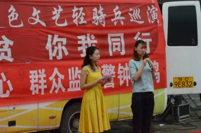 廉政文化巡演送“廉”下乡 群众受欢迎(图文)“快!县里的红色文艺轻骑兵戏曲进乡村巡演来了,演出马上开始。”7月5日一大早,竹山县城关镇窑沟村的群众互相吆喝着,涌向村文化广场,一场廉政文化盛宴即将上演。