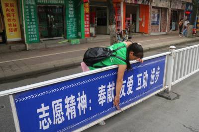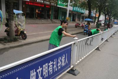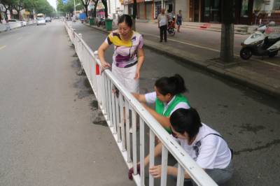 7月7日早上8:30,谷城县民间义工协会20余名义工队友在谷城宾馆大门口集合,参加“美眉行动”创建卫生城市活动。本次活动由义工队友孙定明领队。首先领队对活动前明确分工,发放工具(洗脸盆和抹布),讲解活动中的安全事项。今天的任务是对县府街政府门前路段的马路护栏进行清洁,分工后大家分头行动,各负其责。由于没有水源,由几位友友想办法找到路边商店老板“借水”,护栏由于长时间没有清理,上面厚厚一层灰尘,大家发扬一不怕苦,二不怕累的雷锋精神,对护栏边边角角认真、仔细的打扫、擦拭,活动现场,义工队们忙碌的场面,成为一道靓丽风景线。由于大家很卖力,个个满头大汗,汉流夹背,看到清理后的护栏焕然一新,队友个个脸上洋溢着开心、幸福笑容,因为大家用勤劳的双手,美化着自己的家园。