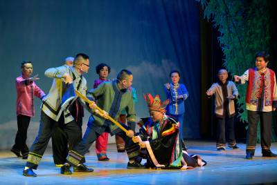 “南剧”又称南戏、施南调,是鄂西土家族聚居区特有的地方剧种,道白、唱腔多杂有鄂西土家方言土语,风趣幽默、通俗易懂,富有浓厚的生活气息,至今已有300多年的历史。2008年,南剧被列入第二批国家级非物质文化遗产名录。(视界网 宋文摄)