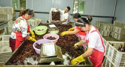 嘉鱼珍湖曾因《舌尖上的中国》莲藕而出名,如今珍湖养的龙虾,已在北京、上海大有名气。9日,嘉鱼珍湖农工们凌晨就忙碌开了,起龙虾地笼,龙虾经分拣等级,过秤、装冰打包,直运北京、上海,龙虾日销量达3000斤。为充分发挥大湖原生态优势,今年3月珍湖开始在莲藕中套养龙虾,下龙虾种苗20万斤,好水养好虾6月10日开始就起捕上市。珍湖面积3800亩,预计龙虾年产量达100万斤。去年,湖北省嘉鱼县"陆口珍湖"莲藕通过了国家质检总局,生态原产地保护产品认证。2017年,莲藕产量600万公斤。