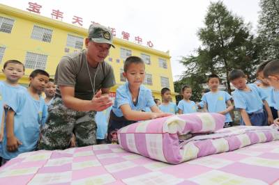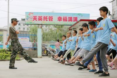 7月10日上午,竹山县天英留守儿童托管中心的留守儿童正在进行军训,军训内容突出军事技能训练,训练科目包括队列、消防技能、军训汇报表演等内容,留守儿童在军训中磨砺意志,提高技能。同时,将感恩教育、传统游戏等融入军训,使军训活动更加丰富多彩,让留守儿童暑假生活更加充实、开心。暑假期间,该县溢水、麻家渡、宝丰、擂鼓等天英留守儿童托管中心开展以军训等为主题的社会实践活动。据悉,竹山县天英留守儿童托管中心已在溢水、麻家渡、宝丰、擂鼓、秦古、得胜、大庙、竹坪、柳林等9个乡镇建立了分校,打造了农村留守儿童托管的“竹山模式”。该托管中心将定期开展暑期军训、“走进博物馆”、“参观红色革命教育基地”等多样化天英户外大课堂活动,积极整合资源,持续优化课程,创新户外课堂,让留守儿童开阔了视野,提升了自信心,增强了团结协作精神,享受了童年的快乐。