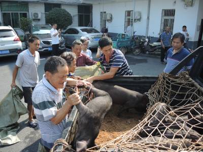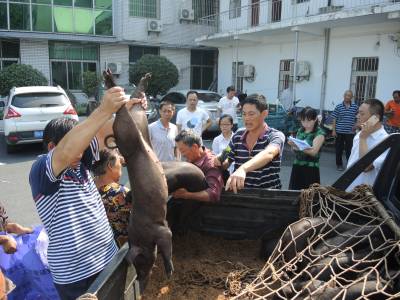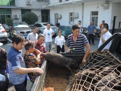 7月11日,云梦县胡金店镇政府院内,该镇40多户精准扶贫户依次领取生态黑猪。为促进精准扶贫户脱贫致富,胡金店镇政府联系随州博裕生态养殖公司提供黑猪仔猪100多头,由40多户有意愿的精准扶贫户采用传统养殖方式喂养,博裕公司按照市场价回购成猪(保底价9元/斤),扣除成本,每头猪可获利1000元。 通讯员 黄永强 辛红强 摄 通联 云梦县胡金店镇政府 黄永强 电话 15971282503