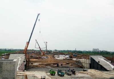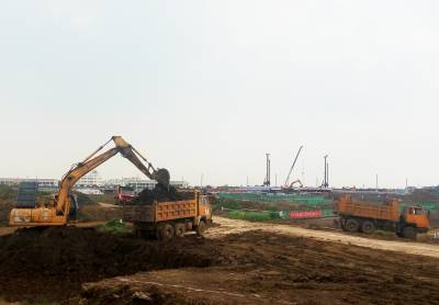 7月10日,位于云梦县吴铺镇境内的汉十高铁孝感西站工人们正在忙碌地建设站前广场和站房。该县紧随“高铁时代”步伐,抢抓汉十高铁和孝感西站建设机遇,坚持云孝一体化发展,高起点规划、高标准建设高铁新区,该项目主要建设孝感西站1平方公里核心控制区的站场、停车场、换乘中心等交通枢纽、道路、供排水等公共服务设施工程,将该区域打造成以高速铁路、轨道通道、公共交通服务、配套服务于一体,对外交流、展示为核心的高铁门户新区。并加快推进云梦中心城区梧桐路、凤栖路等两条对接高铁新区快捷通道建设,尽早发挥高铁新区功效。