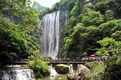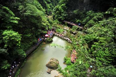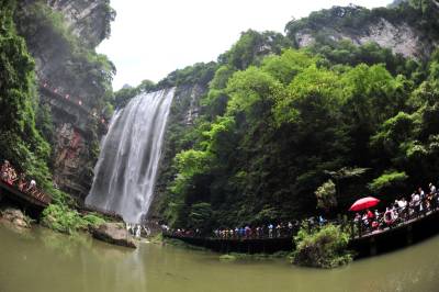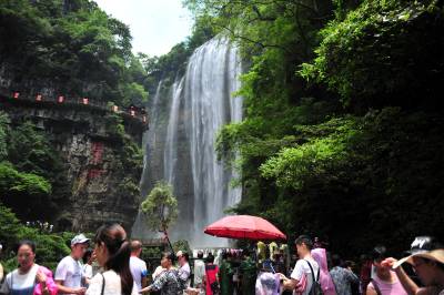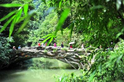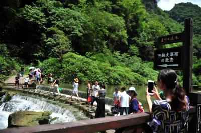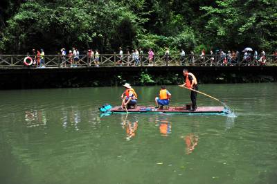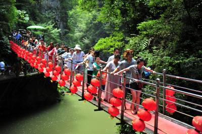 盛夏时节,宜昌市夷陵区黄花镇“三峡大瀑布”景区的山水“氧吧”成为游客避暑度夏的好去处,风景区内青山绿水、清风蝉鸣、竹筏清泉,散发着峡谷的美,清澈的水、清凉的风和静谧的森林,吸引各地游客纷至沓来“森呼吸”,体验高浓度负氧离子带来的“森林浴”,尽情享受夏日洗眼、洗肺、洗心的清凉之旅。