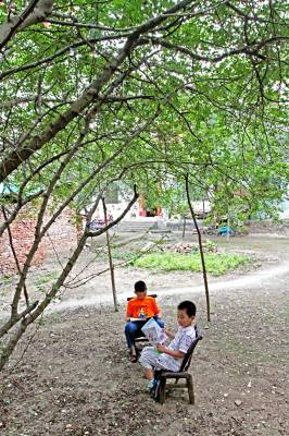 7月14日,房县青峰镇青峰村农家门前的花椒树下,两个小朋友在树荫下读书,乐享绿色的惬意。 近年来,房县整治农村水环境、生态环境和宜居环境,建设水净、地绿、天蓝的家园,扮亮美丽的乡村。目前,该县农村森林植被覆盖达到77.8%,建设村级生活污水处理设施129座,生活垃圾得到集中收集,无害化处理率达到90%以上,农村生态环境质量跨入全省第一方队。
