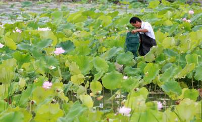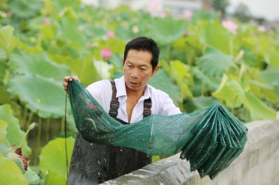 7月17日,竹山县麻家渡镇柿树坪村一组农民张力正在荷花塘里用地笼套捕小龙虾。今年47岁的张力,因脑外伤致残和重度双耳失聪,属因病致残、因病返贫类贫困户。但是,他身残志坚,不等不靠,主动学习特色种养殖技术,承包水田,开挖池塘,种植莲藕,养殖小龙虾、甲鱼等,年纯收入5万元左右,成为当地精神脱贫、产业脱贫、家门口创业的致富带头人。