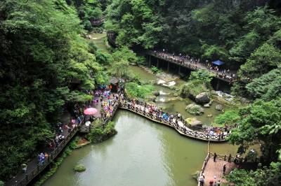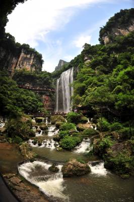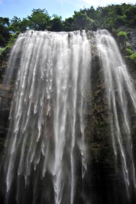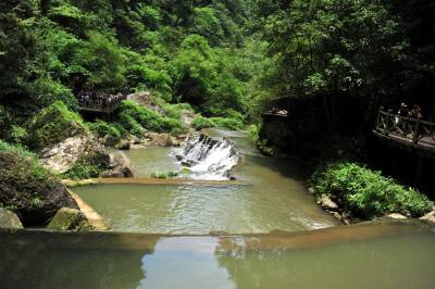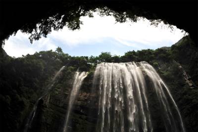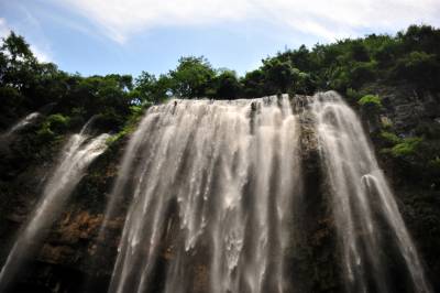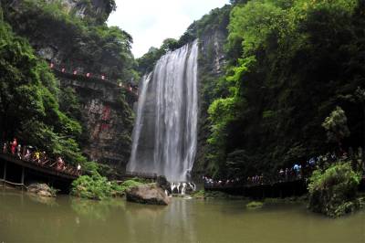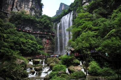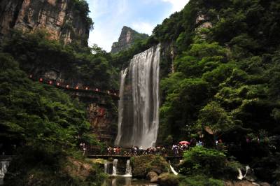 位于宜昌市夷陵区黄花镇境内的三峡大瀑布(原白果树瀑布)景区,是长江三峡西陵峡口新辟的以飞泉驰名的旅游景点,是展示震旦纪、奥陶纪、寒武纪等多个地质年代的天然地质博物馆,景区以山青水秀、洞奇瀑美著称,是个天然的“大氧吧”。