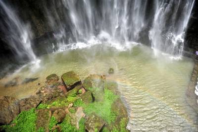三峡大瀑布主体瀑布高102米、宽80米,清泉从百米高的陡峭山崖飞流直下,接天连地,水天雾海,蔚为壮观,被誉为“中国第四、湖北第一”,演奏着一曲感天动地的“英雄交响乐”。逆水而上,沿途分布着30多道瀑布,虎口瀑、一线瀑、珍珠瀑、丫瀑、连环瀑、五扇瀑等形态各异的瀑布接踵而来。这些瀑布有的环环相扣,瀑瀑相连,形成了罕见的连环瀑,尤其是午后晴朗时,瀑中彩虹更是云蒸霞蔚、美不胜收。视界网 张国荣 摄