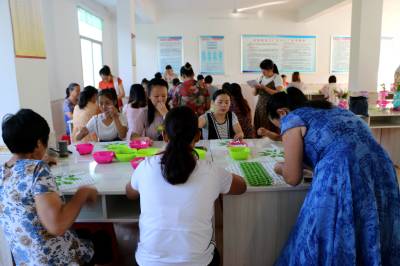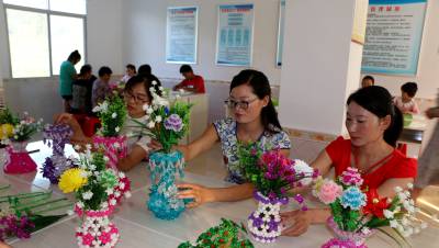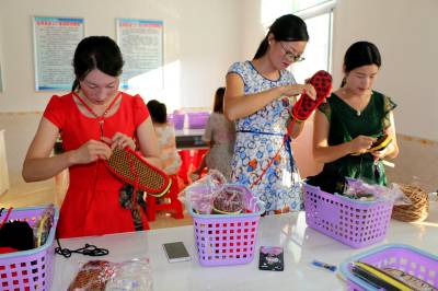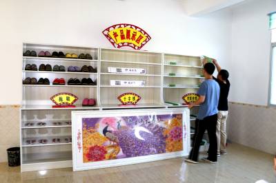 该工厂于6月份建成运营,建筑面积600余平方米,现已形成了集培训、加工、销售于一体的工厂流水线。现有工人280余人,工厂现有4条生产线,分别是手工拖鞋、汽车坐垫编制、手工刺绣和手工饰品。结合本村现有的2家电商,负责从事网络购销及销售产品信息收集,由村党支部牵头与外地商家联系,开展电商网络营销。