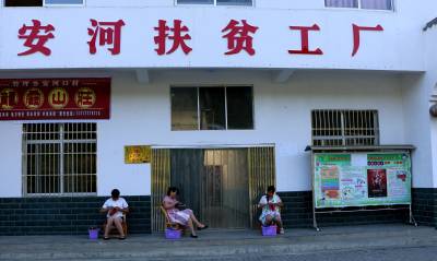 7月18日,笔者在竹山县竹坪乡安河口村河沙坪扶贫工厂看到:几个农家妇女坐在楼梯间编制拖鞋,有几个坐在门口边聊着心中的有趣的故事边扎着绣花鞋垫,有的在楼上操作台前,正在加工汽车坐垫、人工刺绣、手工编制等。
