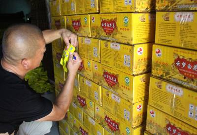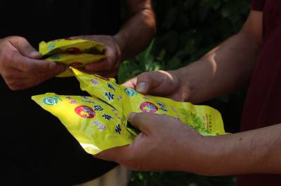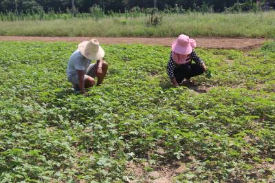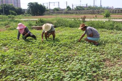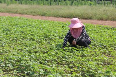 2018年7月18日,云梦城关镇菜农在白花菜地查看管理白花菜生长情况。云梦县白花菜加工企业加工生产的白花菜产品,企业负责人介绍产品及相关证书。
