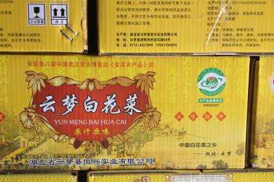 “云梦白花菜”曾荣获第八届中国武汉农业博览会金奖产品奖,今年2月12日,获得国家农业部颁发的“农产品地理标志登记证书”,这是继“白合花菜”后,云梦县获得的第二个农产品地理标志登记证书。云梦白花菜、白合花菜,双双获得此项殊荣,被称为云梦的“双花”地标产品,受到人们的青睐。
