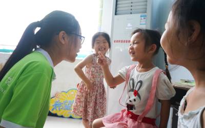 7月19日上午,丹江口市丁家营镇小学暑期“留守儿童”活动室里,来自湖北医药学院第一临床学院的“三下乡”彩虹育蕊医米阳光暑期社会实践队的大学生们在跟孩子们进行快乐英语课堂教学,40多名孩子在大姐姐们的带领下,愉悦地感受到不一样的英语课堂活动。在丹江口市轻工业服装产业园扶贫车间的“安幼之家”,20多名孩子或跟大学生们进行趣味游戏。或翻阅《八仙过海》、《郑和下西洋》、《大闹天宫》《红孩子》等故事书,或在志愿者的笔记本上观看《红海行动》等影片。