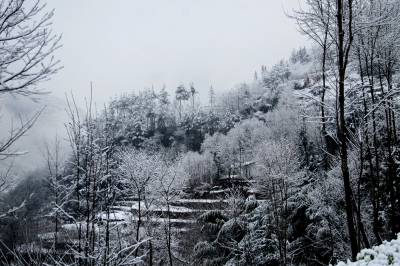 桃花雪绘出水墨竹溪