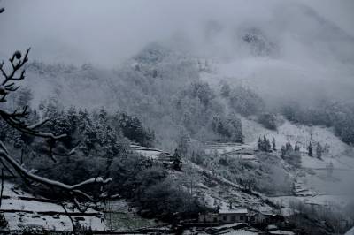 > 桃花雪绘出水墨竹溪