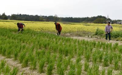 2019年3月19日,湖北省通城县四庄乡新联村留守妇女互助队抢抓晴好天气,管护庄稼。 当日,油菜花香,正是春种春管大好时节。通城县留守妇女自愿组成互助队,抢抓农时,共同管护庄稼,播种苗木等,不误农时,抱团闹春耕,解决春耕劳动力的需求,促进邻里谐发展。