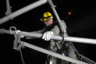 湖北沙洋:塔上“穿针引线” 消除线路隐患