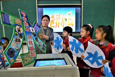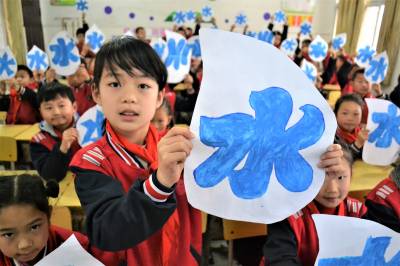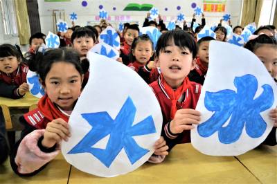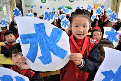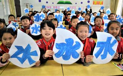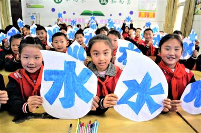 学护水 迎水日 2019年3月21日,湖北十堰市郧阳区柳陂镇中心小学学生用蓝色描绘“水”字。 当日,该校开展“保水质、描水字、迎水日”主题教育活动,学生们通过用蓝色描绘“水”字,上护水知识课、江边捡垃圾等方式,培养孩子们爱水护水意识,迎接3月22日“世界水日”的到来。 (供稿:湖北省十堰市郧阳区柳陂镇中心小学 杨显有 朱之梅 18163190517 442500)