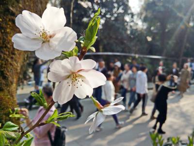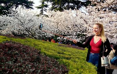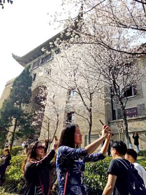 武汉大学樱花一夜开成海 吸引中外游客提前赏樱花