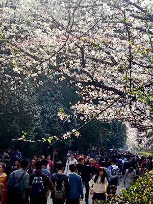 3月19日晚的湖北武汉天气预报是小到中雨局部大雨并伴有大雨,没想到是老天爷给武汉市民开了个玩笑,不但没有起风雨,而是让武汉大学樱花一夜开成海,闻讯踏至的中外游客大学生和武汉市民近万人,20日提前入校赏樱花先睹为快。而在3月21日至4月4日,该校实行樱花免费开放期间,封闭管理,通过该校指定的网络预约通道进行实名免费预约,是社会公众入校赏樱的唯一途径。进校时段为工作日8:30—17:30、周末8:00—18:00。3月18日20:00起,社会公众可通过武汉大学官方网站、官方微博、官方微信、移动服务平台“智慧珞珈”APP或官方抖音进入预约系统,填写姓名、身份证(或军官证、护照等有效证件)号等个人信息,对3日后的参观行程进行预约。工作日每天预约限额1.5万人,周末每天预约限额3万人。