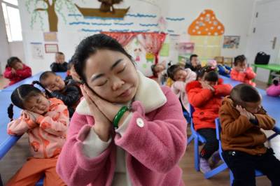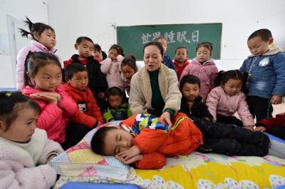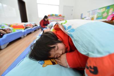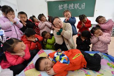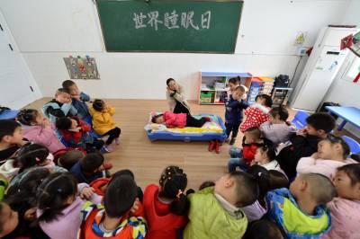 当日是世界睡眠日,今年世界睡眠日的中国主题是“健康睡眠,益智护脑”。各地学校、幼儿园组织开展相关活动,通过介绍睡眠常识、做睡眠游戏等方式,让孩子们认识到健康睡眠的重要性,引导孩子们从小养成良好的睡眠习惯。 (视界网杨韬 陈先瑞摄)