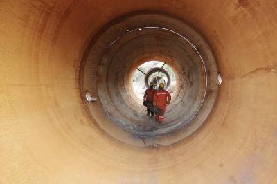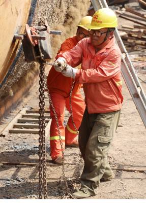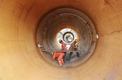 本报珠海讯(通讯员孟庆虎 江海明) 3月21日,中铁大桥局珠机城际金海特大桥工地钢结构加工的工人正在进行钢护筒对接作业。按照大桥施工方案,钢护筒用于大桥钻孔桩施工,该桥约有12000吨钢护筒需要加工制作,时间紧任务重,因此,工人们起早贪黑、加班加点来确保钢护筒加工任务的完成,满足现场施工需求。目前已完成钢护筒制作9000吨。