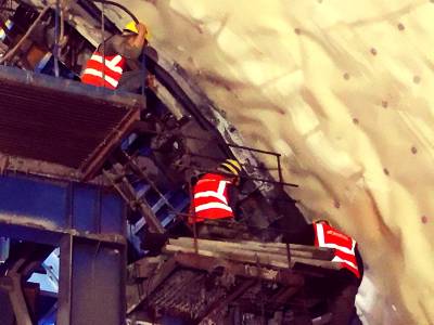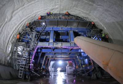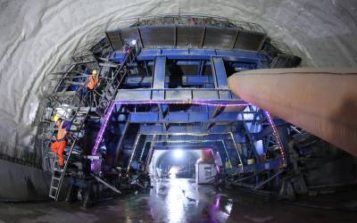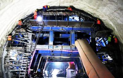 3月22日,工人们正在贵南高铁都安隧道进口二衬台车上检查防水板敷设质量。都安隧道属二级风险隧道和全线控制性工程。施工过程中,中铁十一局贵南高铁广西段6标项目部通过把推广机械化、信息化、智能化和标准化施工与劳动竞赛结合,确保了隧道工程质量和施工安全,被树为全线样板。