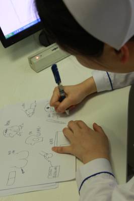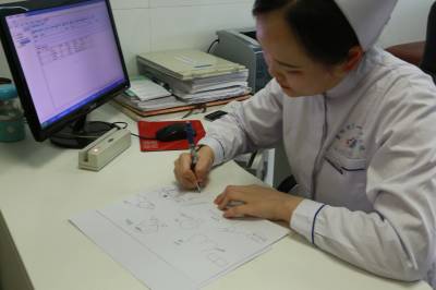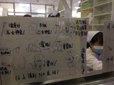 该院儿科门诊护士长胡莉看到以后,觉得很有创意,立即张贴在了窗口处。胡莉介绍,这张画的作用不小,患者家属来了以后往往很心急,解释不清的时候,就让他们看手绘图。另外,手绘图上的卡通人物非常可爱,有些患儿哭闹的时候,家长还可以用它来哄孩子,吸引孩子的注意力。