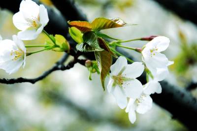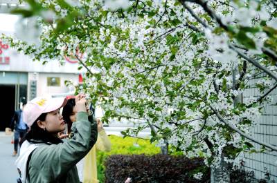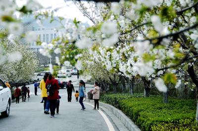 湖北十堰:书香满园春意浓 樱满枝头花正好 校园为民众开放赏花