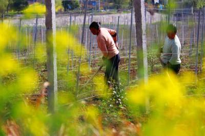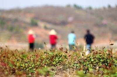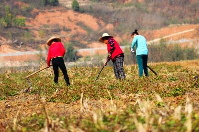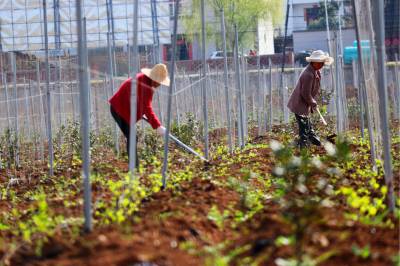 2019年3月26日,湖北省十堰市郧阳区安阳镇小河村村民在中药材基地里锄草。 近年来,十堰市郧阳区坚持把产业基地发展与全区脱贫攻坚工作有机结合,采取“公司+产业基地+贫困户+订单”“公司+合作社+贫困户”等模式,通过土地流转、产业基地务工、入股等多种途径让贫困户增收、脱贫,实现了产业经济与社会效益双丰收。