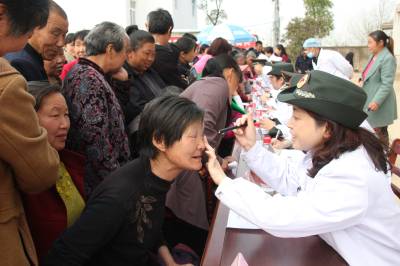 3月27日,联勤保障部队组织中部战区总医院的医疗专家,到定点帮扶的孝昌小河镇黄砦村开展义务巡诊活动,为200多名群众送医送药送健康。(视界网 高玉峰 摄 )