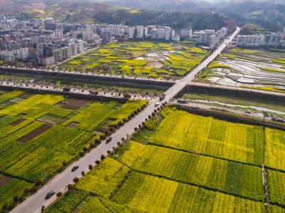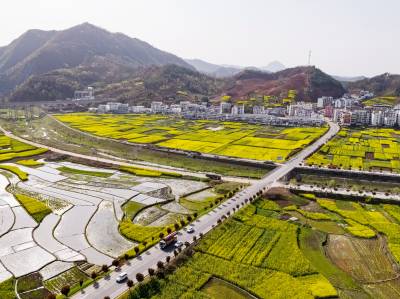 3月27日,346国道竹山县溢水镇过境公路,油菜花开,道路畅通,景色宜人。近年来,湖北省竹山县建成公路 4056公里,乡镇通畅率100%,建制乡通达率100%,建制村通畅率100%。多山多水多乡村的竹山打造了外通内联、通村畅乡、安全便捷的城乡交通运输网络。
