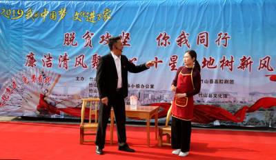 据悉,2019年,竹山县纪委监委联合县委宣传部、县文化和旅游局开展以红色文艺轻骑兵“我们的中国梦.文化进万家”为主题的“廉洁清风聚民心.十星高地树新风”巡演活动,以党规党纪和国家监察宣传教育“十进十建”工作为引领,把精准扶贫、扫黑除恶、党风廉政为题材,精心创作了廉政小品《女婿上门》《开会现场》、高腔小戏《争低保》、表演唱《旗帜扬》、戏曲联唱《当干部就要吃亏》、器乐合奏、扶贫相声、音乐快板、广场舞等内容丰富、形式多样的文艺节目,将“乡音倡廉”与“廉政文化巡演”“红色文艺轻骑兵”和乡镇文艺宣传队等活动相结合,使优秀“乡音倡廉”文艺套餐送达到全县17个乡镇,深入到田间地头,村(社区)、中心院落、移民集中安置点、学校等地巡演,给干部群众带来一场通俗易懂、寓教于乐的党风廉政建设宣传教育。