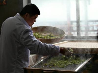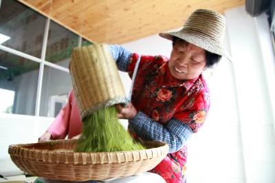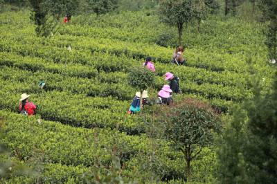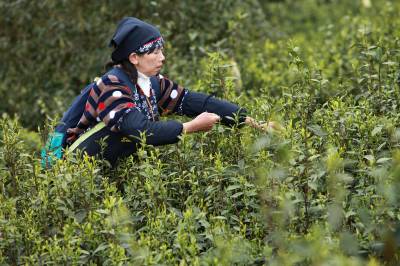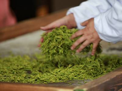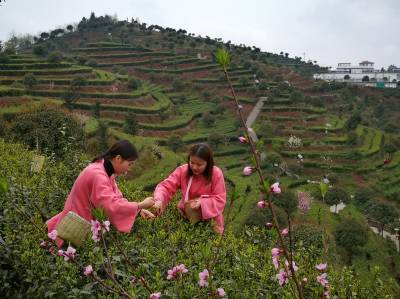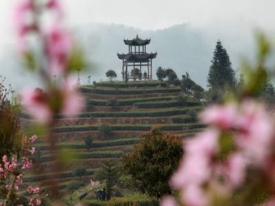 3月31日,湖北恩施市白杨坪镇洞下槽村大宝坪组村民抢在清明节前采摘富硒贡茶(恩施玉露)。当天,雨过天晴,号称“绿色银行”的生态茶园在云雾中若隐若现,错落有致。土家吊脚楼、民宿、加工厂依山而建,茶园就像公园。坐镇传承与传播恩施玉露传统制作技艺的国家级非物质文化遗产第十一代代表性传承人蒋子祥,融入其中,采摘、加工、品饮、销售一条龙,走茶旅融合发展产业道路,带领乡村们致富,引来无数摄影爱好者及游客观光聚焦。